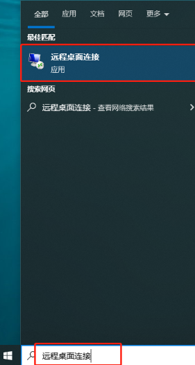 在任務欄的搜索框中輸入遠程桌面連接或者RDP, 然后點擊遠程桌面連接。
