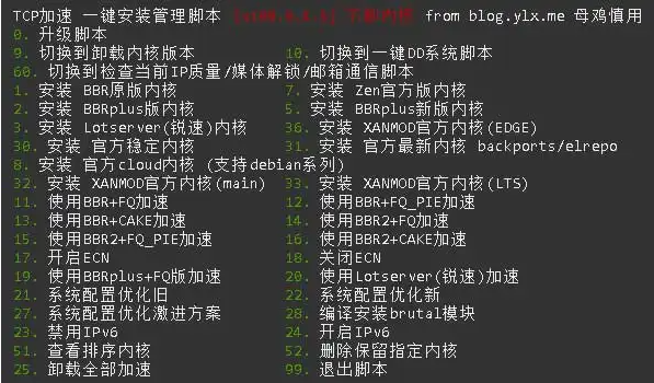 之前也簡單介紹過BBR相關的信息,最近折騰一臺OVH的服務器的時候,又接觸了一個功能比較全面的一鍵BBR腳本,可以一鍵個更換最新內核,一鍵更換xanmod內核,一鍵開啟BBR、BBRplus、BBR2、BBR+FQ、BBR+CAKE等等多個功能。喜歡折騰的可以試試,不過注意盡量不要在已經有生產環境的VPS上折騰,以防萬一。